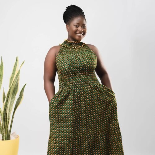 Denise Dark Green Elegant Ankara High-neck Halter Maxi